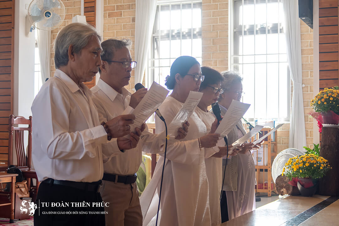 Trong phần chia sẻ Lời Chúa, cha Phê-rô Ma-ri-a Hoàng Thành Tâm, cha điều phối Trung Tâm Tu Đoàn Thiên Phúc Việt Nam đã liên kết nội dung của hai bài đọc và bài Phúc Âm với tinh thần của nhóm “Bạn Chiên Thiên Chúa”. Cha không chỉ khơi dậy lòng sùng kính Đức Trinh Nữ Ma-ri-a mà còn khích lệ các thành viên sống sứ vụ và linh đạo Tu Đoàn Thiên Phúc trong môi trường gia đình và xã hội.